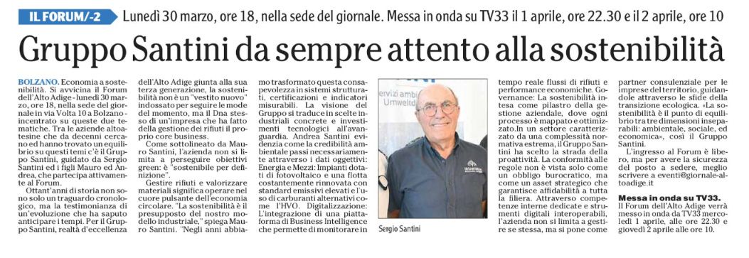 Una breve rassegna di articoli tratti da giornali e quotidiani che parlano del Gruppo Santini. /